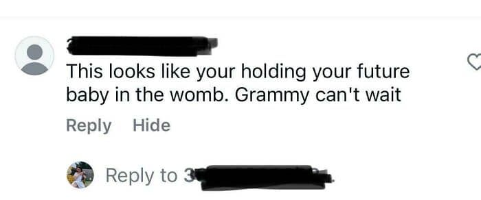 Husband and I are child free by choice. No picture that I posted looked remotely like I was pregnant/holding my stomach.