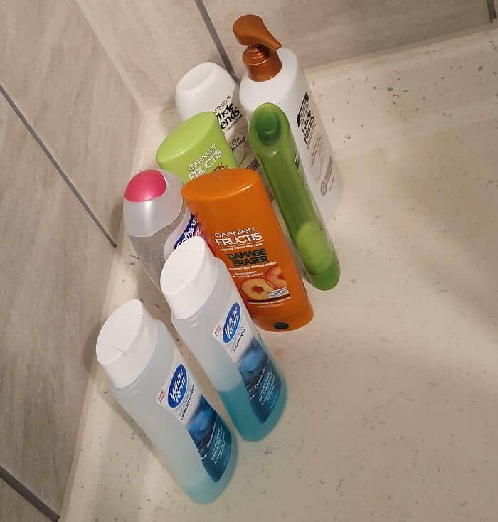 #43 Mother-In-Law Purchases More Hygiene Products When Her Current Ones Are 50 – 75% Empty. She Then Begin Using The New Product Leaving Them All In The Shower Like This