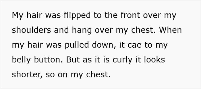 So, the Original Poster (OP) recently went to the hairdresser to trim the ends of her long hair—a common occurrence for many people, when the ends become dry and brittle. Our heroine, for as long as she can remember, has always had the hair below her waist, so the outcome of this visit was literally catastrophic for her.