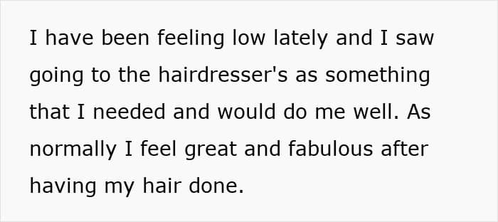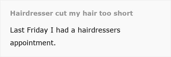 Let’s be honest, this situation is quite unpleasant—and, by and large, it will probably take this woman several years to grow her hair back to its previous length. If you’ve been used to having the same hair length for years, this will be hard to come to terms with. On the other hand, the OP, as a client, has certain rights in this situation.