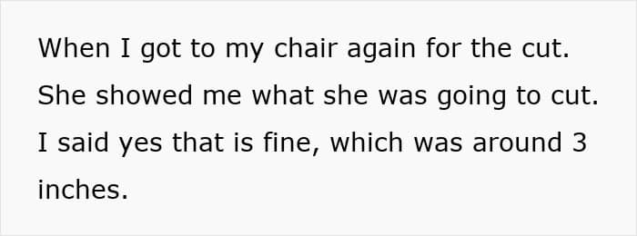 The lady just wanted to trim a few inches of her hair’s ends and she told the hair stylist this directly
