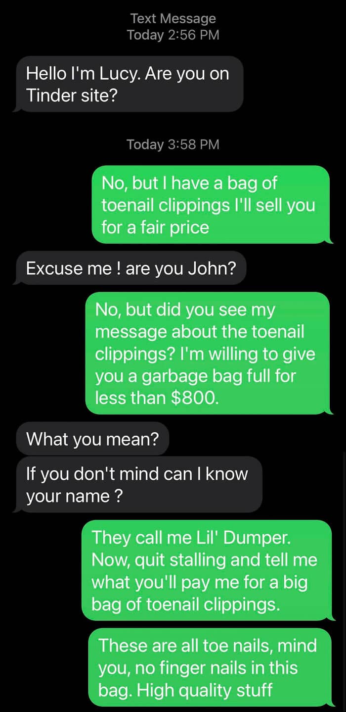 #22 I’ve Decided To Answer All Obvious Spam Texts Something Toe-Nail Related
