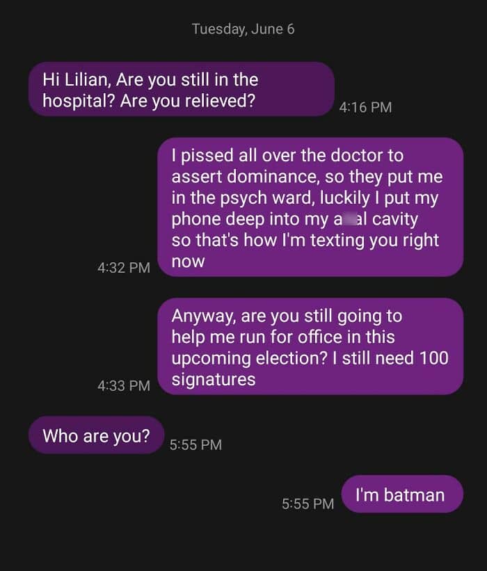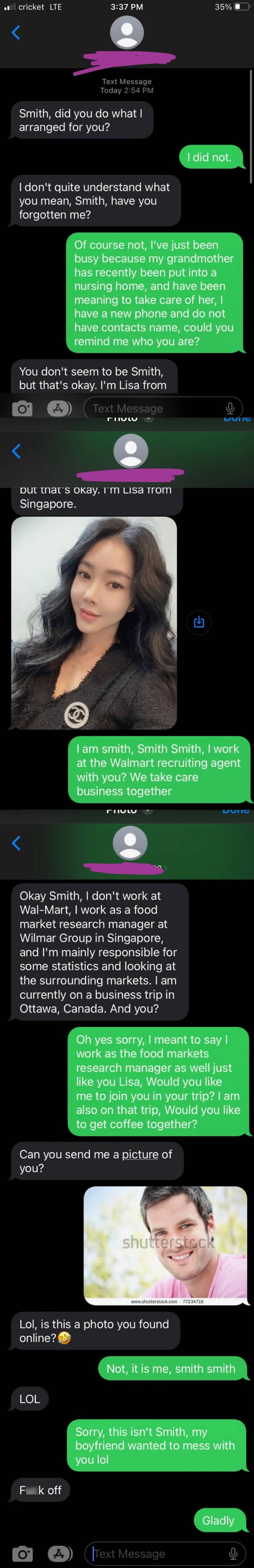 If you’re a proud owner of a cell phone, chances are you’ve received a mysterious text from an unknown number. Most likely, you sent back a quick message in response, letting them know that they mixed up the digits or just simply ignored it. But some people just can’t resist the opportunity to play along with the anonymous sender, resulting in some of the funniest interactions.