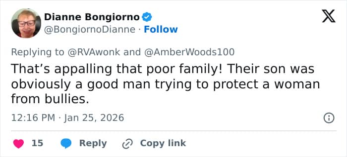 “That’s appalling that poor family! Their son was obviously a good man trying to protect a woman from bullies,” read one comment.