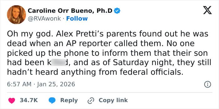 RELATED:Alex Pretti’s parents reportedly received no official phone calls from law enforcement about their 37-year-old son’s sudden loss