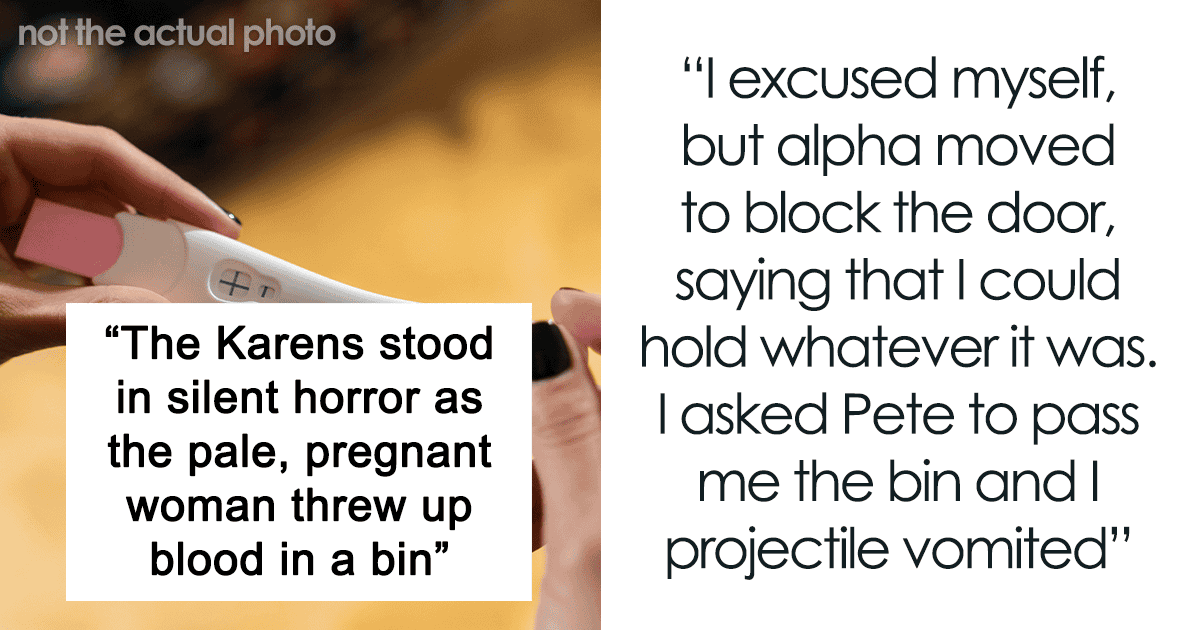 This woman had an extreme case of morning sickness and would throw up several times a day. Recently, she shared a story of how her colleagues forced her to attend a pointless meeting during that time. Naturally, she became nauseous during the meeting, and the nasty colleagues were treated to a first-row show of Hyperemesis graviradum.
