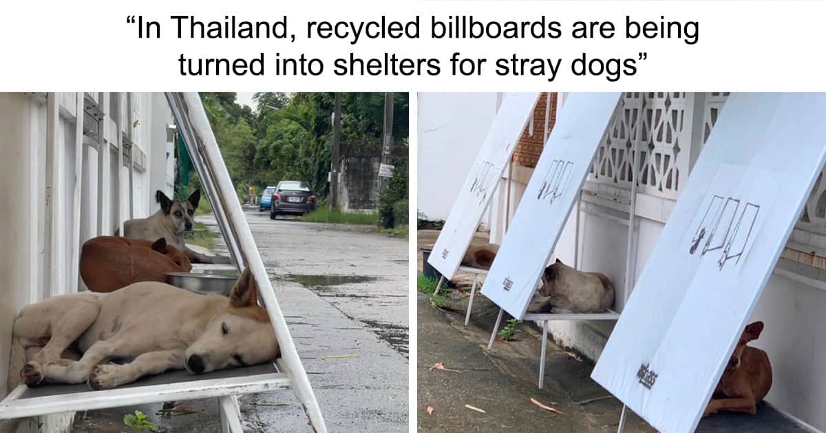 In Thailand, recycled billboards are being turned into shelters for stray dogs.
