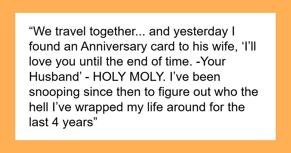OP was stunned to discover an “anniversary card” that he had gotten for his wife, claiming he loved her. After realizing that she had been a mistress for the past four years, the poster started snooping around and digging up more information on him. His wife was also the owner of his business, but since she worked in a different state, they had a “long-distance marriage.”