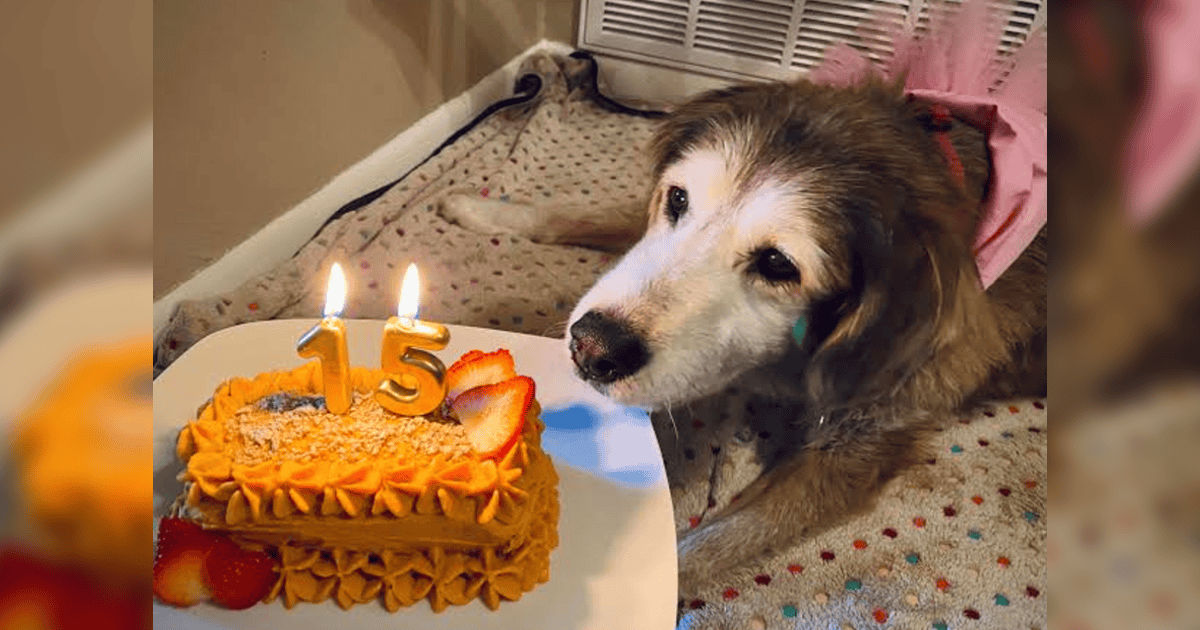 Happy birthday to her! A tear fell on the dog’s face as he finally received a birthday cake after 15 years.