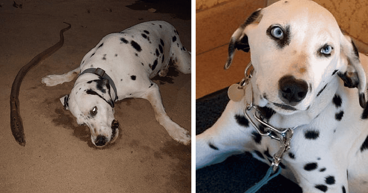 This horrible scene shows the heroic Dalmatian that saved its family from a venomous cobra before succumbing to a snake bite.
