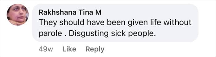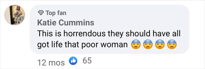 “Can’t even bear to think what that poor lady has endured and still going through,” someone emphasized. “There needs to be tougher sentencing. They will be out in less time to enjoy the rest of their lives. Its [sic] disgusting really.”