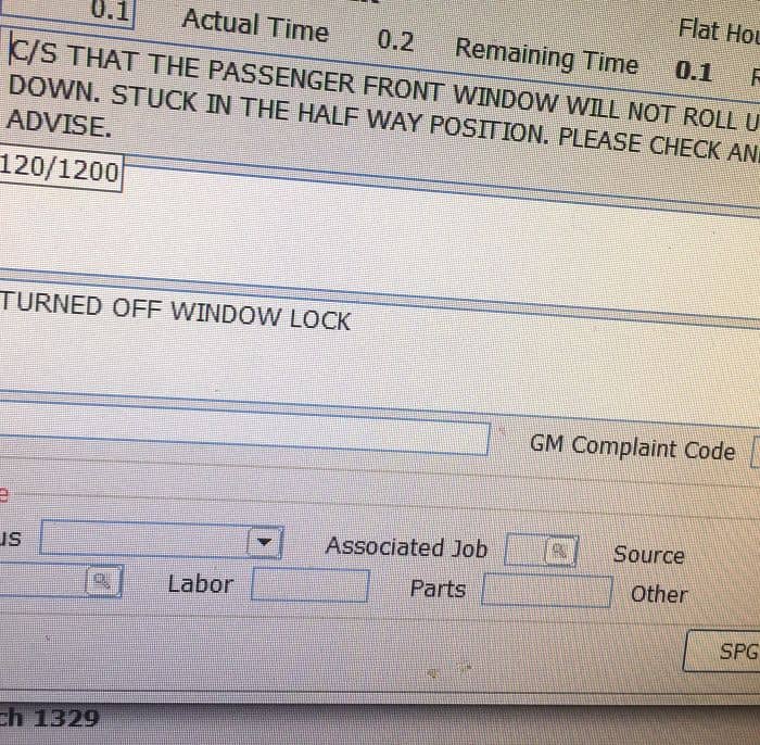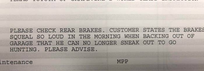 #6 Actual Work Order At Our Shop From One Of Our Technicians