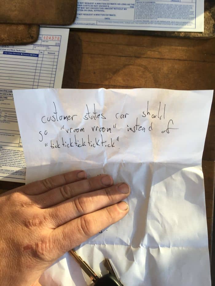 But the state of some of our cars… Due to money shortage, ignorance, or neglect, we DIY or pretend we don’t see a problem when it’s clear that a professional has to take care of it. So when the inevitable occurs and we pull up to their place begging for help, the poor fellas know they’re stuck with it for good.