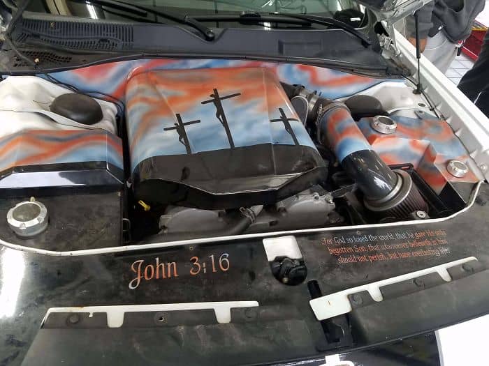 #5 Hood Opens. Hood Is Layed Down Immediately. Tech Exclaims “Oh Hell No.”