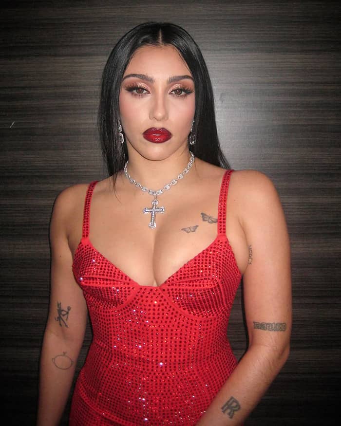 The 28-year-old daughter of Madonna and Carlos Leon opted for a see-through bodysuit and black stilettos