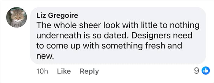 “Call me old-fashioned but I fail to see what is fashionable about walking around virtually undressed in an ugly catsuit,” wrote another person, while a separate user asked, “How is this not indecent exposure?”