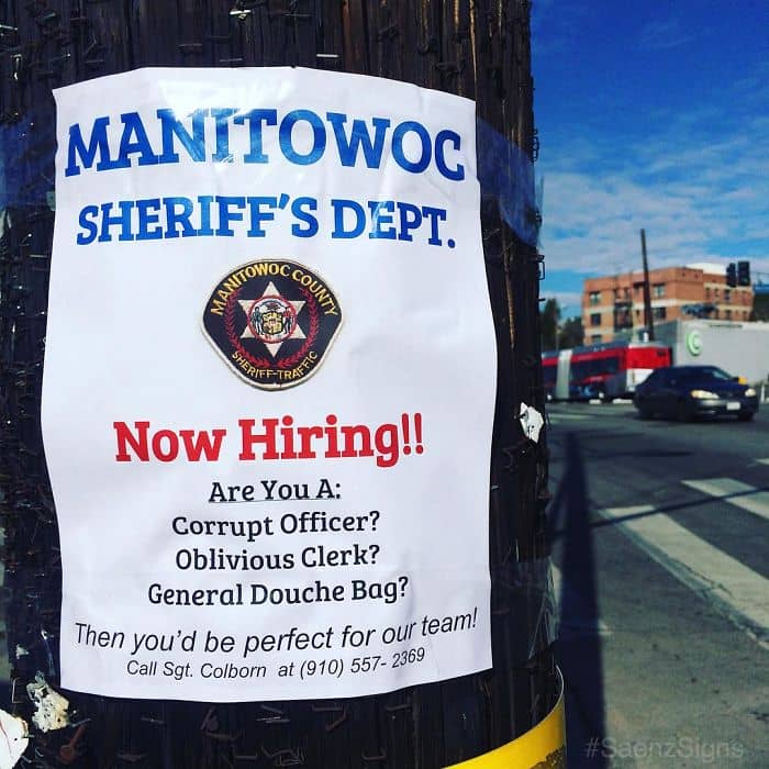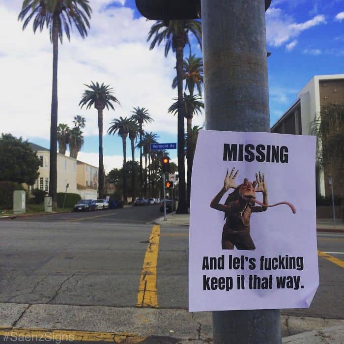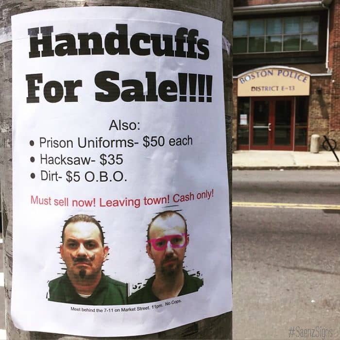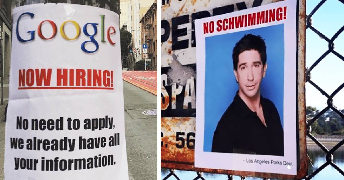 From a ‘Sean Spicer looking for work’ poster put up in front of an unemployment office to a ‘free condoms’ poster put up near a Planned Parenthood – all of Saenz’s posters are not only hilarious but are also put up in the most genius places! Keep on scrolling to check them out and don’t forget to vote for your favorites.