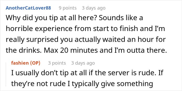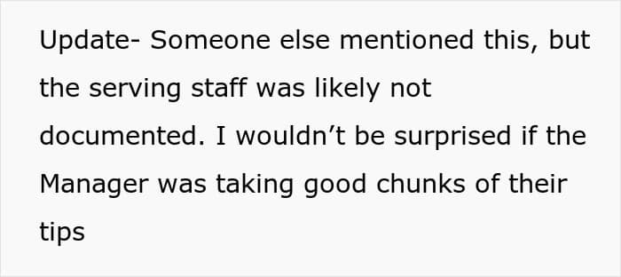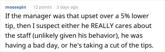 In the same way there are unwritten rules for customers to follow, management should also stick to certain dos and don’ts, such as not criticizing customers for the size of the tip they leave, for instance. Fellow netizens didn’t think that was acceptable, either, so many of them suggested that the OP should post about her experience again, this time in the form of a bad review.