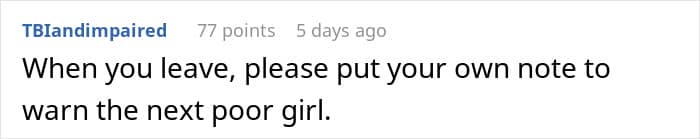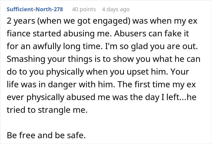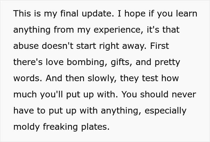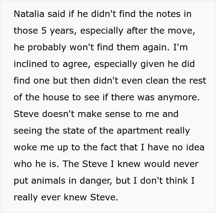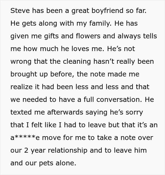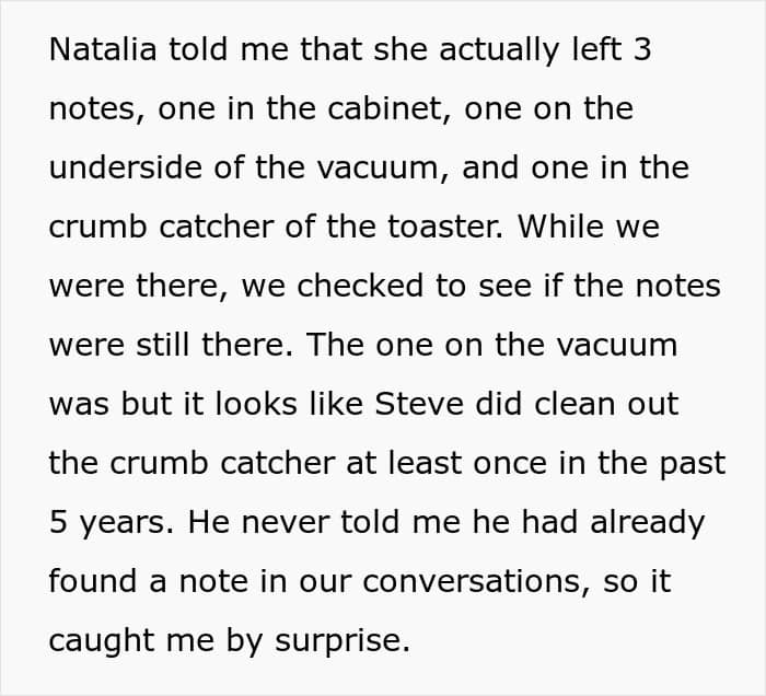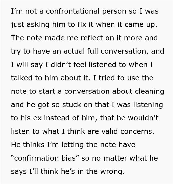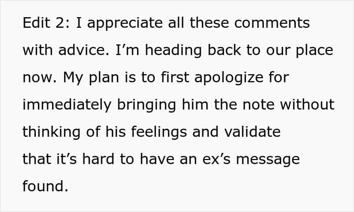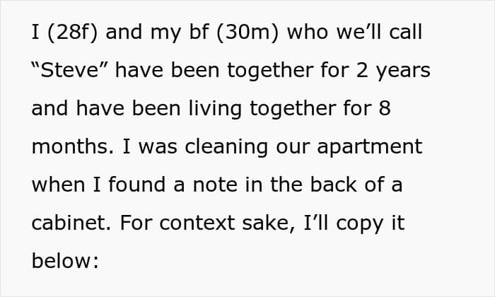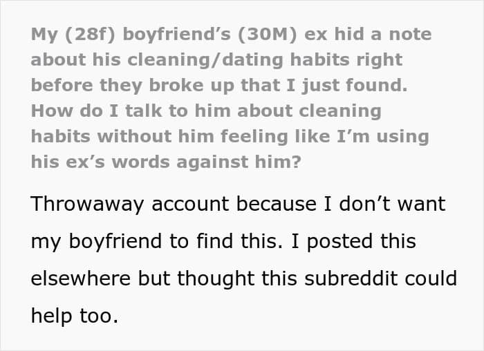 Luckily for redditor ThrowRA-ex-note, she received a similar insight in the form of a note. She found it in a cupboard left by her boyfriend’s ex, telling her to run away from him. Such a discovery led her to rethink her relationship and realize that it wasn’t as wonderful as she once thought.