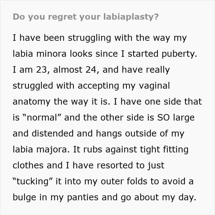 “Do you regret your labiaplasty?” a woman asked in a resurfaced Reddit thread