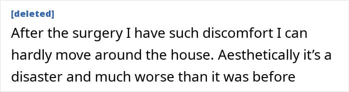 “This is seriously ruining my future s*x life!” the worried user shared. “I had this surgery to feel confident enough during s*x, but as the days go by, I regret it more and more because more complications keep appearing!”