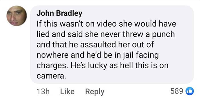 Someone else penned: “If this wasn’t on video she would have lied and said she never threw a punch and that he assaulted her out of nowhere and he’d be in jail facing charges.