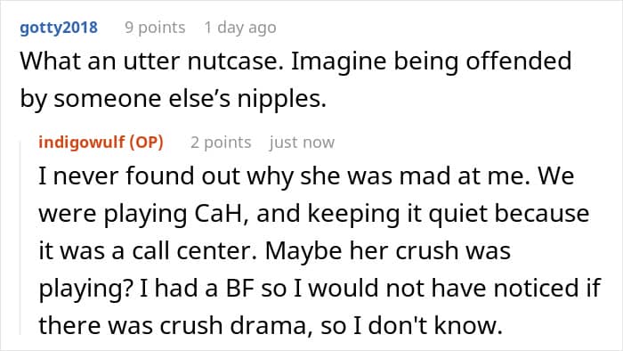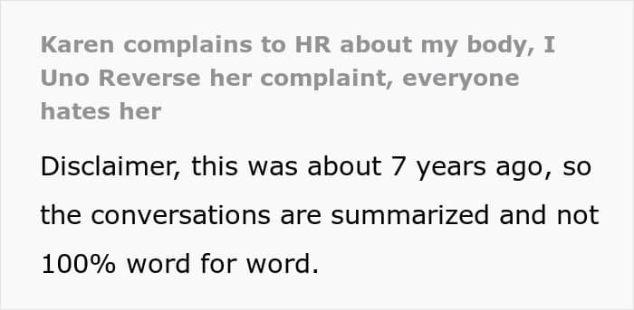 Everything started when Indigowulf’s coworker, who she dubbed Karen, tried to get her in trouble with HR and told them the woman was looking too provocative and violating the dress code.