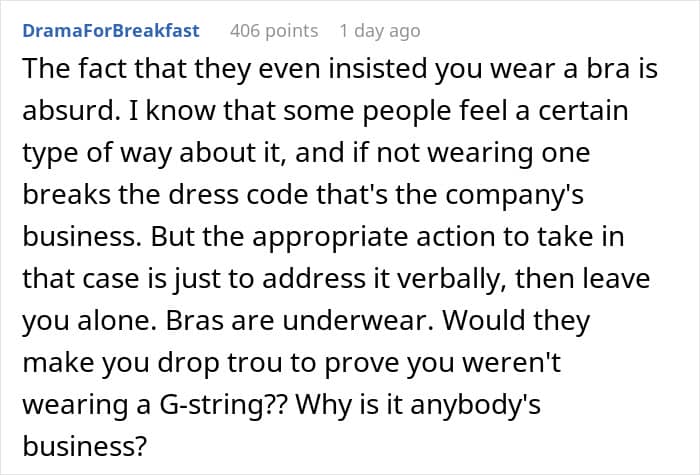 This woman was accused of violating the dress code at work when there was no specific policy on it