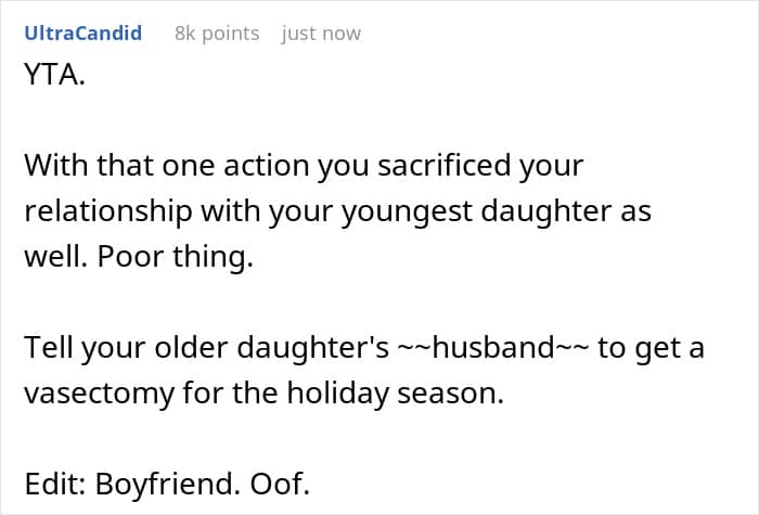 It was a YTA verdict across the board, netting the post itself nearly 12K upvotes