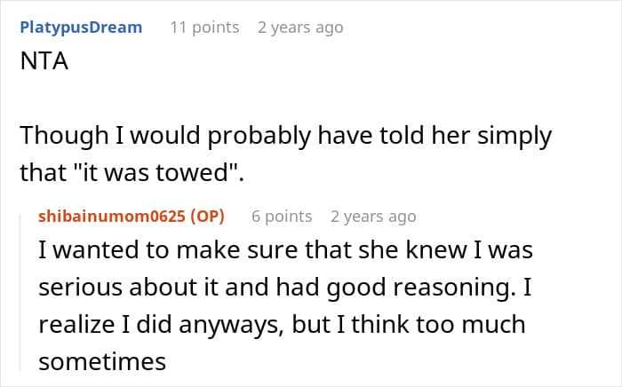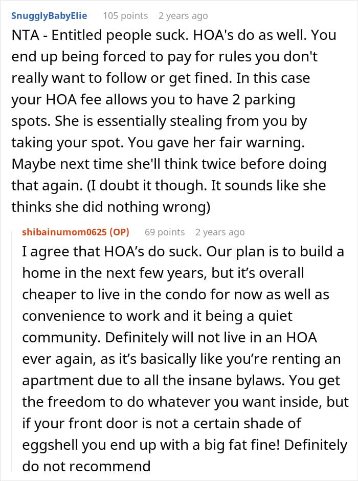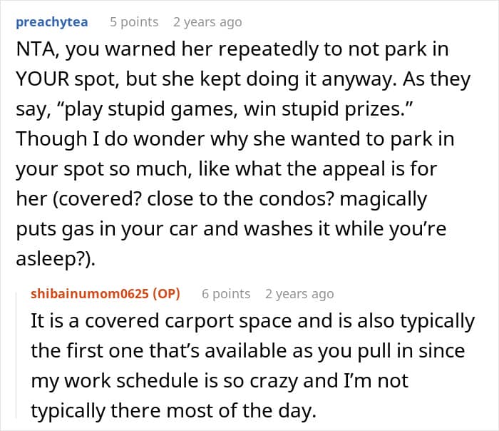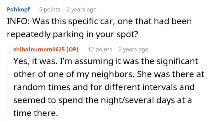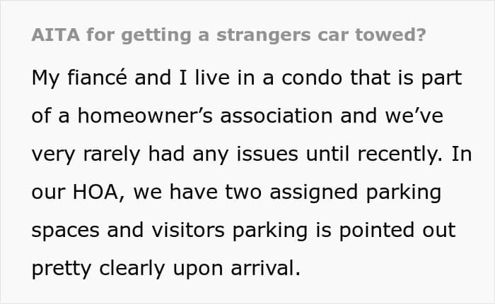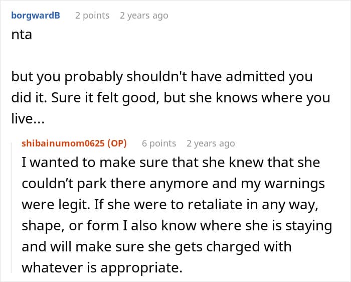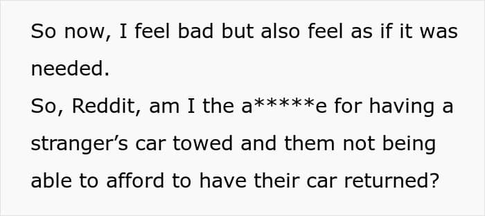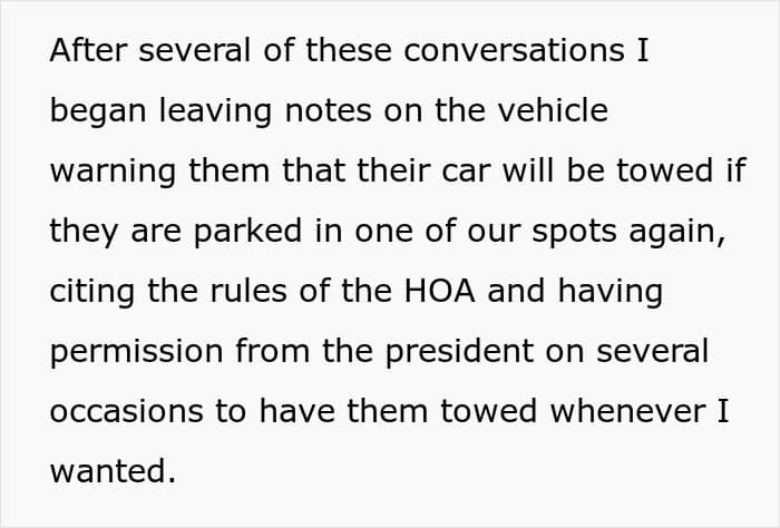 The woman in the OP’s story didn’t seem to fear the idea of being towed much, as even after several warnings, she continued to occupy the redditor’s parking spot. Eventually, that led to her having to learn the lesson the hard way, but in the eyes of fellow redditors, that didn’t make the OP a jerk; they shared their thoughts in the comments.