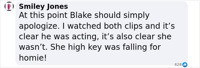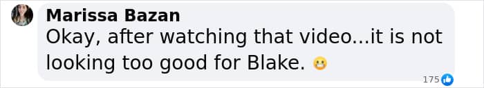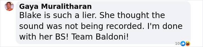 “Omg Blake is constantly trying to direct over Justin,” one said while another wrote, “At this point, I think she’s gaslighting all of us. We saw the video Blake. Give up. Drop the lawsuit. Say you were hormonal because you just gave birth and you misinterpreted. That would be a better excuse. That way people will forgive you someday. She is so delulu.”