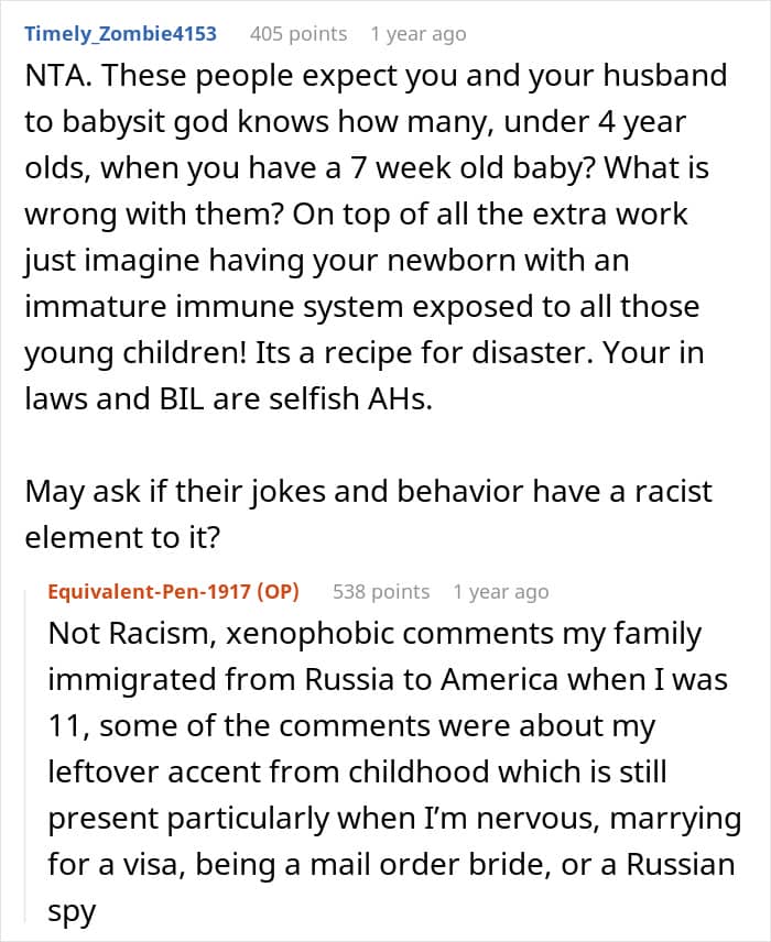 Many felt that the author’s in-laws were being unreasonable