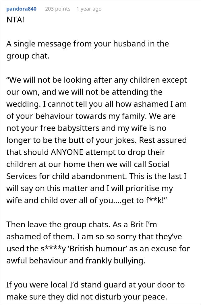 For instance, a woman sought advice online after her brother-in-law, who had previously insulted her, expected her to babysit six children under 4 years old during his own wedding. This situation escalated family tensions as she stood firm on her decision, prompting mixed reactions from relatives. Keep reading to see how her husband and his family reacted to her refusal.