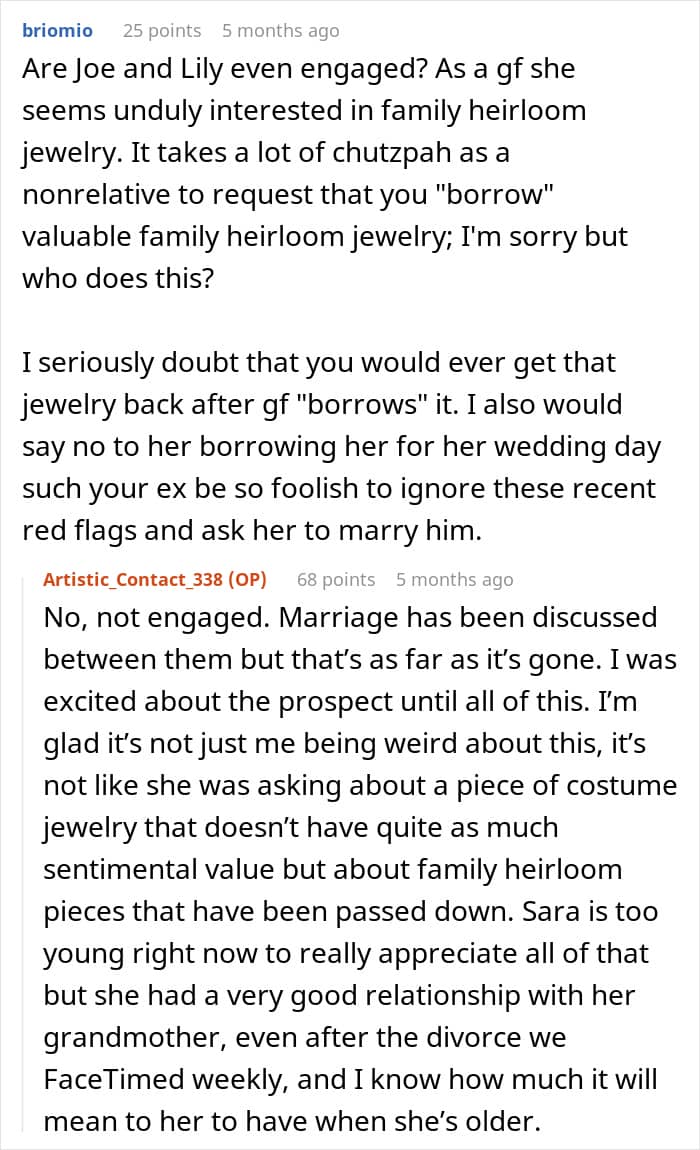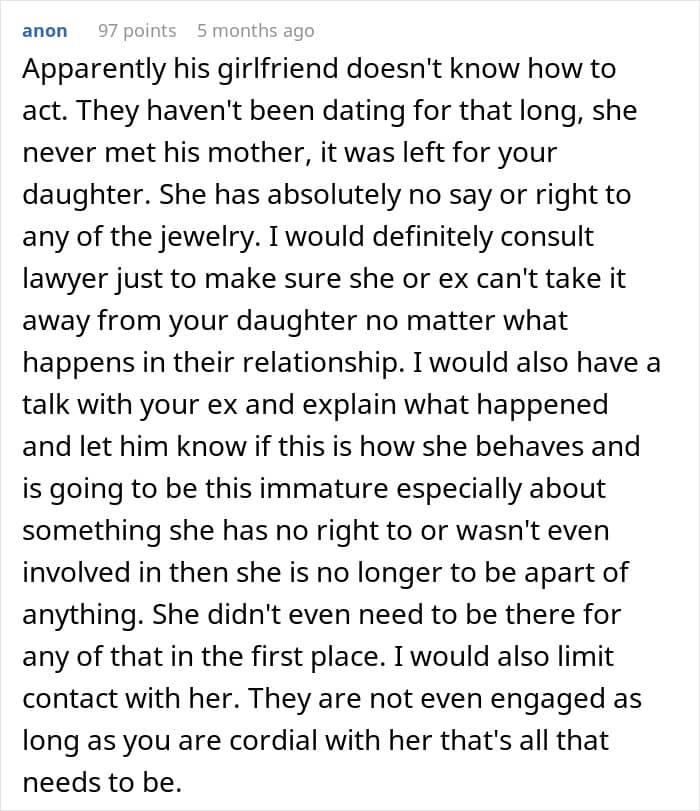 People online advised the author to discuss this with her ex, as they believed her daughter rightfully deserves the jewelry