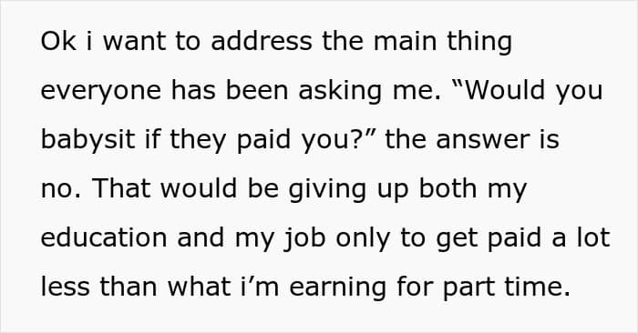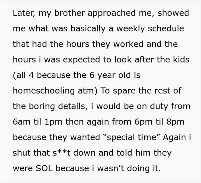 But when this woman was told, rather than asked, to babysit her nieces and nephews, she decided to set boundaries with her family