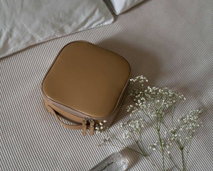 • Small beauty bag filled with anything I may need during my travels including sanitary products, paracetamol, tissues, bandaids, antibacterial wipes, hand sanitiser, gum, lip balm, hair ties, and a compact mirror