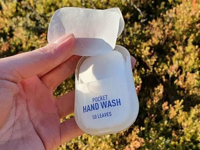 Dry hand soap- we get the kind that comes in sheets (Sea to Summit) and hand towels -we have some that are compressed to like quarter size and then they open up and they are washable. Bathrooms don’t always have soap or anyway to dry your hands.