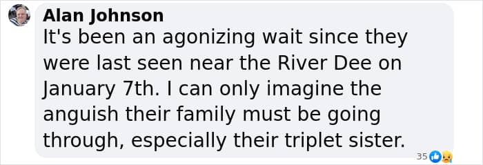 “I can only imagine the anguish their family must be going through, especially their triplet sister,” a user wrote.