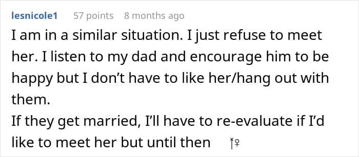 While divorce is on the rise, it has also been observed that gray divorce (divorce after 50) has grown to over 36%. While her parents’ divorce might not be that unusual for the poster, the girlfriend younger than her might be quite horrifying for her.