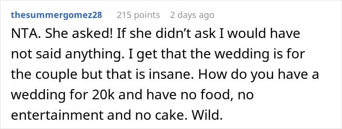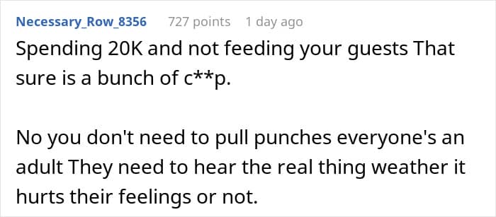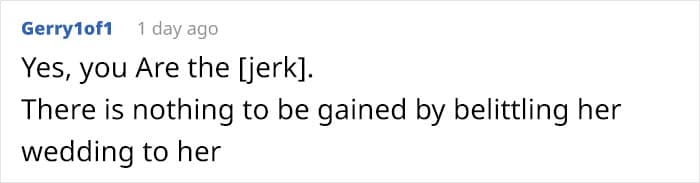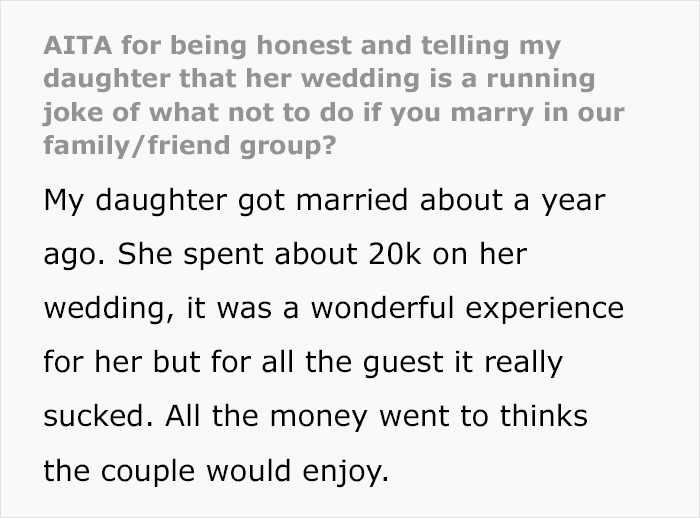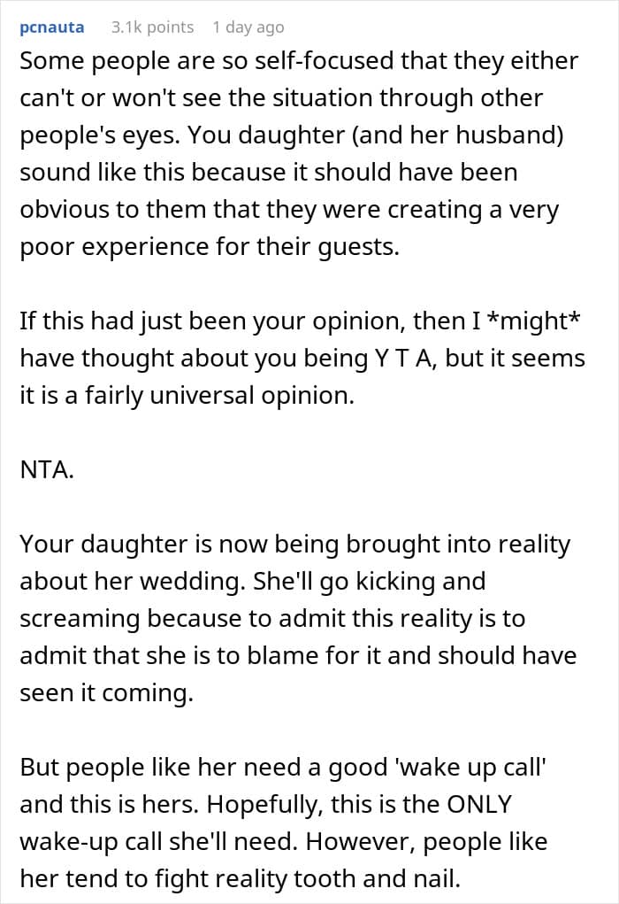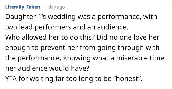 But when this parent revealed to their daughter that guests hated her wedding, she did not take it very well