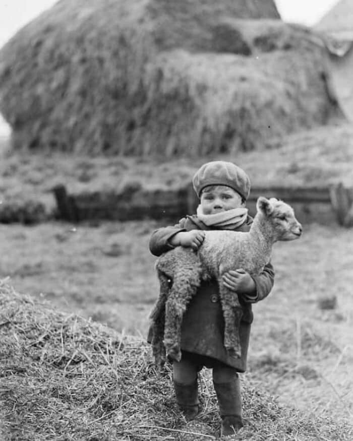 #9 A Photograph Of A Little Boy Carrying A Newborn Lamb, In Scotland, 1932