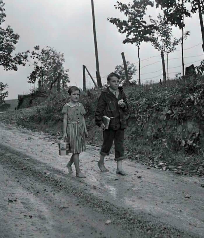 #80 Two Kids Walking Barefoot To School, Claiborne County, Tennessee, 1940