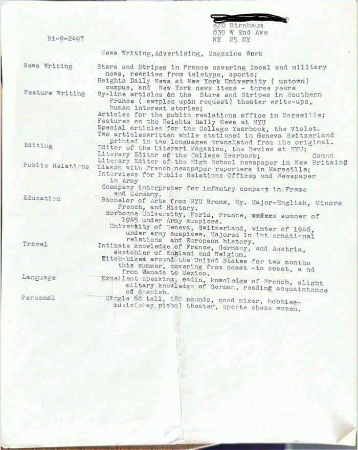 #100 My Grandfather Just Passed Away At 100 Years Old. Found His Resume From 1946 (Just Home From The War) Among His Things…