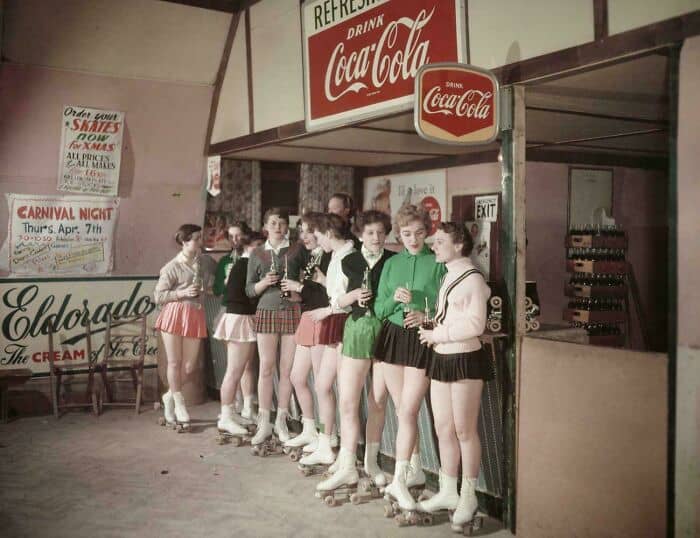 #109 Group Of Women At The Roller Skate Ring, Have A Coke While They Rest A Little. Mid 1950s