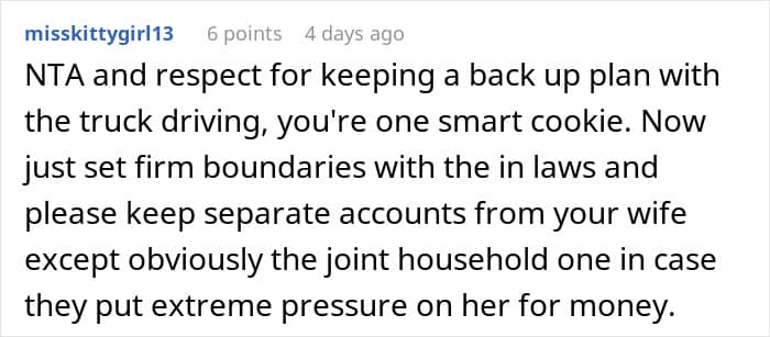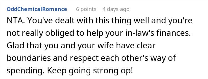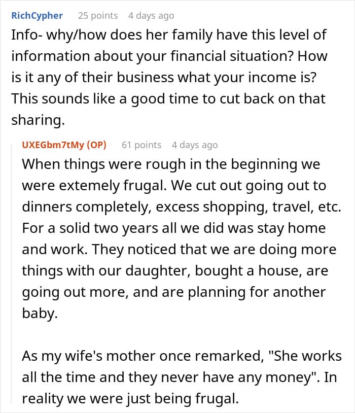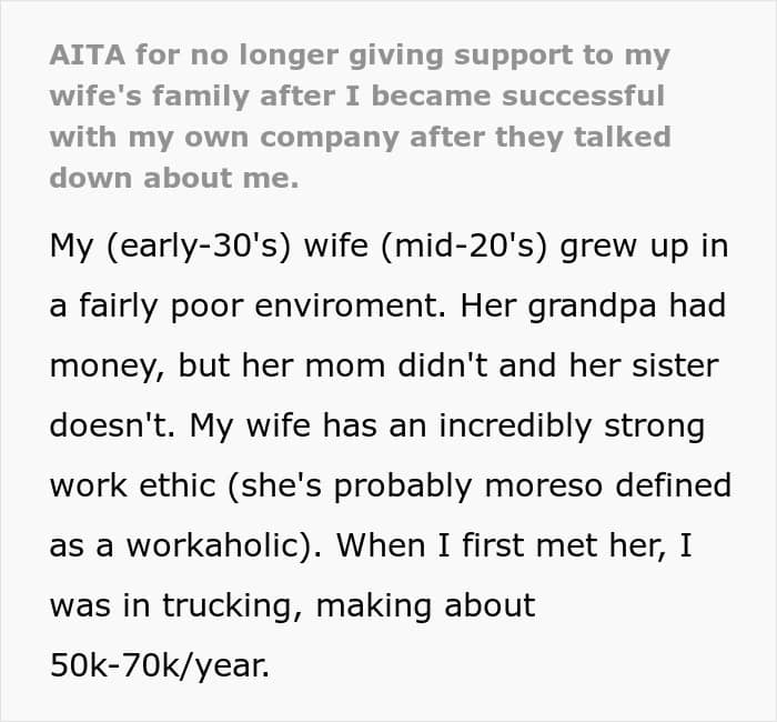 In this story, the explanations above make sense as the author says his wife’s family came from a “fairly poor environment.” While he didn’t delve into specifics, it’s possible that his in-laws may not have the same approach to business and earning money, causing them to belittle his efforts.