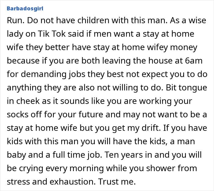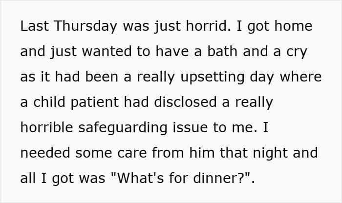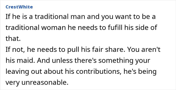 “In this case, there’s no regard for the OP’s exhaustion, stress, or emotional needs. We all need to feel significant and valued in our relationship,” the relationship coach pointed out. “When one partner consistently ignores the other’s struggles, it leads to emotional disconnection.”