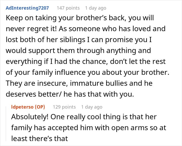 This woman found herself torn between standing up for her brother and not burning bridges with the rest of the family