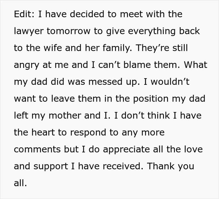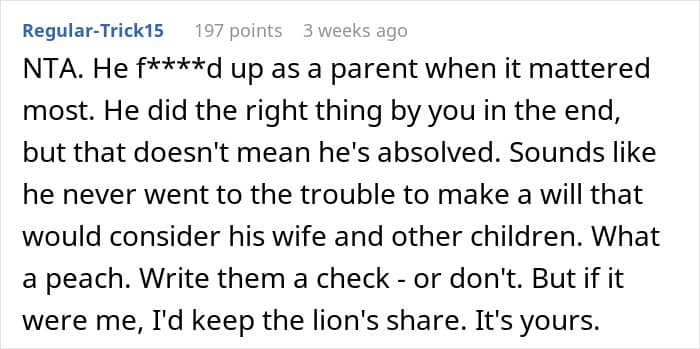 Some readers reassured her that she shouldn’t feel guilty about inheriting his estate