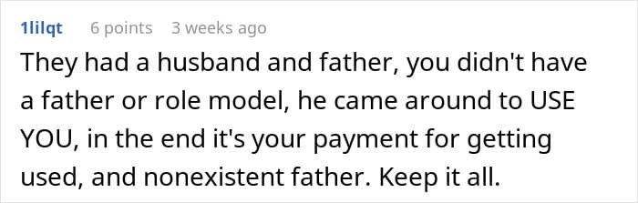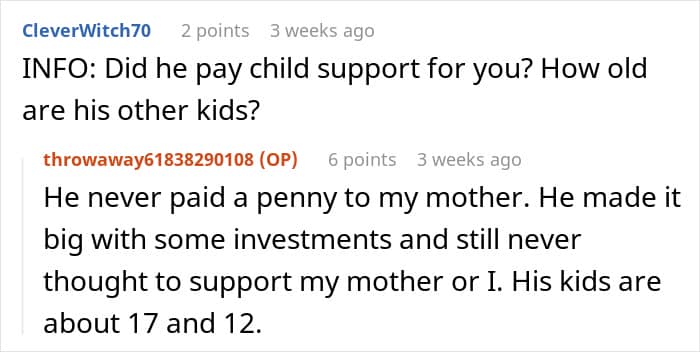 In the replies, the woman added that her dad never made an effort to support her and her mom after he left