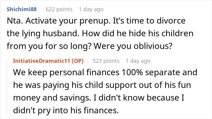 There might be many reasons people choose to keep secrets in their relationships, though, from shame and embarrassment—which seem to be the main ones, according to some research—to trying to safeguard themselves and the relationship. In the OP’s case, it’s unclear why the husband chose to keep such a secret—and for so long, too—but the cat that got out of the bag was simply too big for the redditor to ignore.